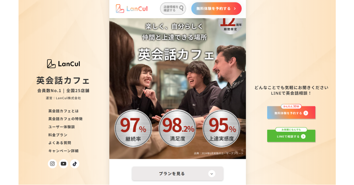 英会話カフェ 英会話カフェLanCul(ランカル)の口コミ・評判は?料金プランや無料体験の内容や申し込み方法は?